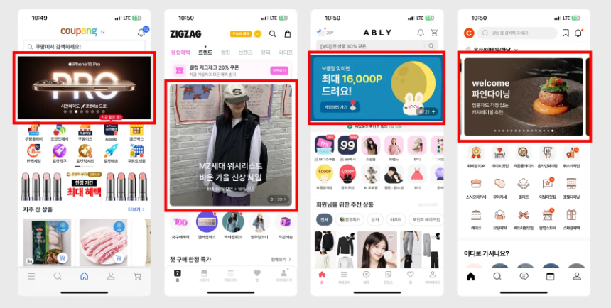 : 메인 화면의 가장 상단 영역(중요한 메세지를 전달하는 영역)