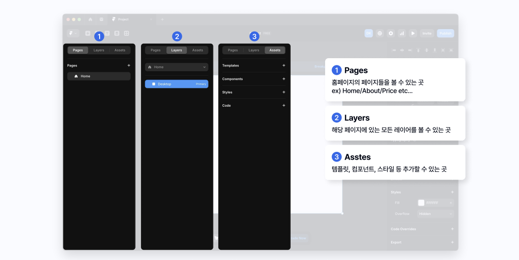 | Frame | Frame | 레이아웃의 기본 단위 / 요소들을 담는 박스 |